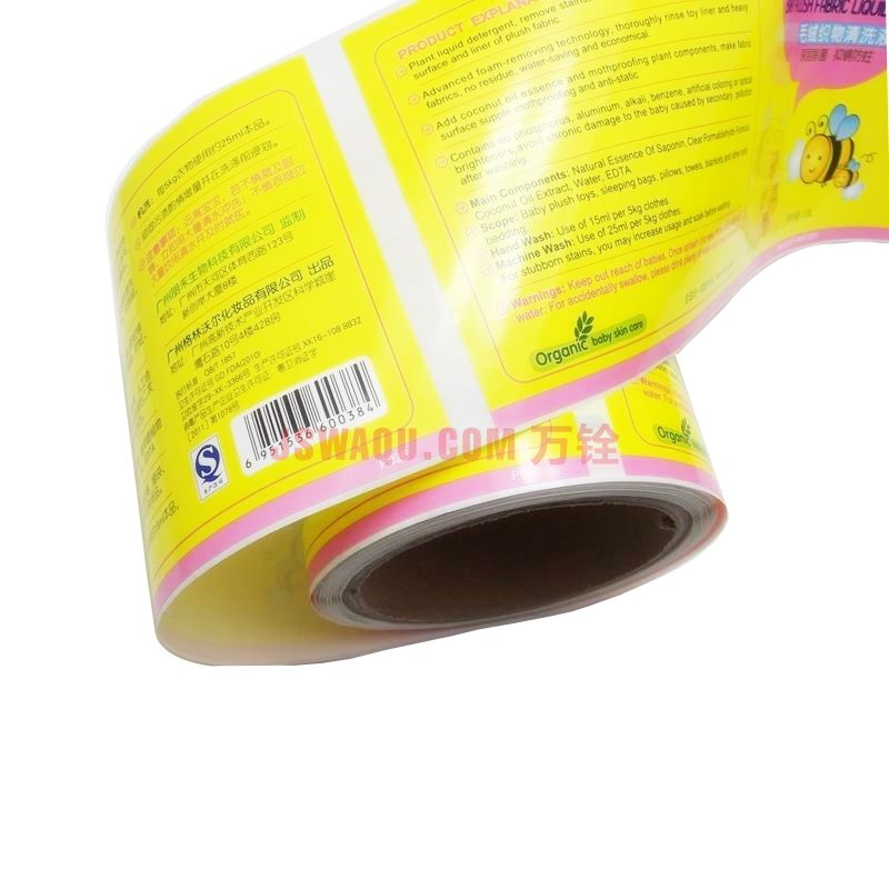 • 生产定制各种洗衣液不干胶标签,解决各种不干胶问题:标签掉落脱落,掉标,自动贴标时断标,标签打印错位。欢迎来电咨询! 不干胶材料有:铜版纸,热敏纸,合成纸,亚银亮银PET,亮白PET,PVC,铝箔不干胶,拉丝金,拉丝银等各种材料。