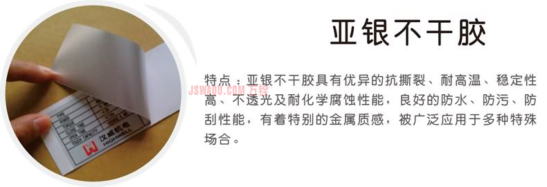 不干胶材料有:铜版纸,热敏纸,合成纸,亚银亮银PET,亮白PET,PVC,铝箔不干胶,拉丝金,拉丝银等各种材料。     标签订购须知 尺寸:标签具体的长和宽。 形状:长方形、直角,圆角的角度、椭圆形、异形等形状具说明 颜色:单色彩色 覆膜:不覆膜光膜亚膜磨砂膜。 数量:所需标签成品数量 形态:平张(手工贴标)卷筒(贴标机用) 材质:常用的有铜版纸合成纸消银龙PVCPET,其它的可以咨询我们业务人员。 受贴面:我们需要知道标签是贴在什么产品表面上的。(塑料、金属、有无水渍油渍、表面是否光滑、弧面平面凸面凹面等情况说明。表面较复的还需要客户给我们邮寄样品和被贴产品。