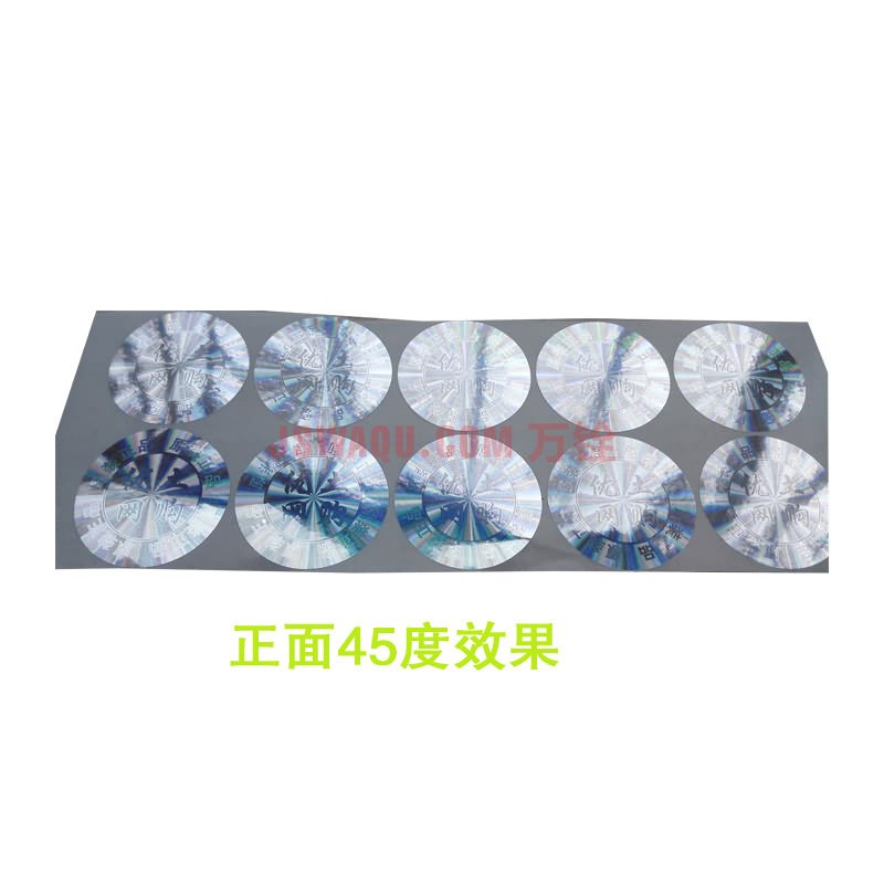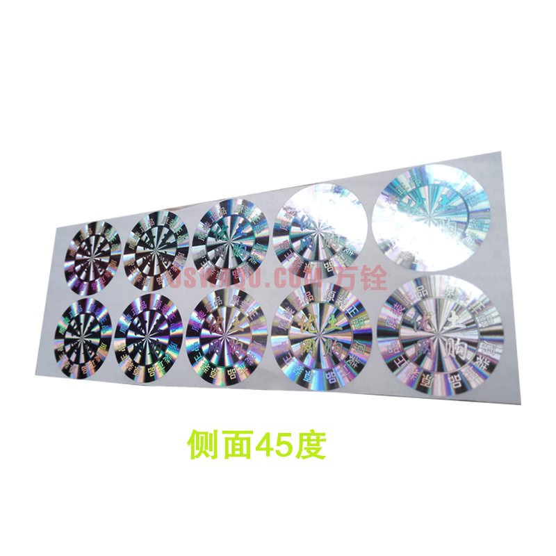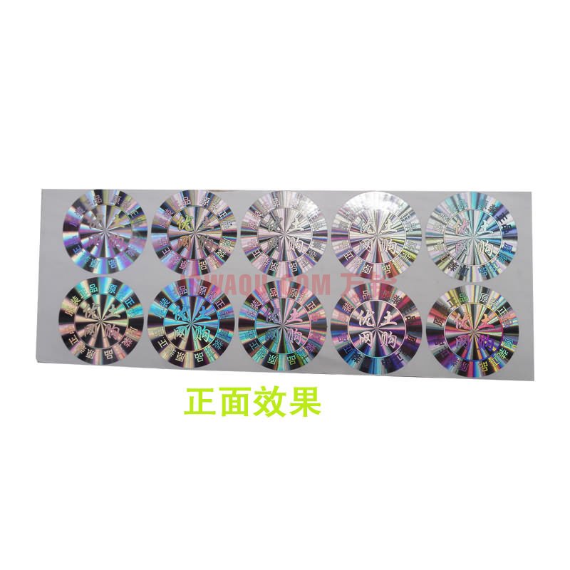 其颜色有金色、银色、红色、蓝色、绿色等等。激光防伪标签应用领域 激光防伪标签适用于各个行业各类产品,如数码,医药,化妆品等。而且此类标签成本较低。激光防伪标签材料 此种标识以氧化铝膜为主材,在标识表面可做上企业信息、LOGO、商标等,也可做上人头像或其他特殊图案、线条。