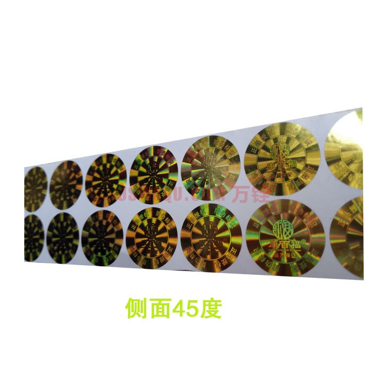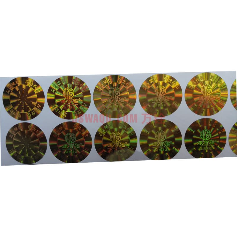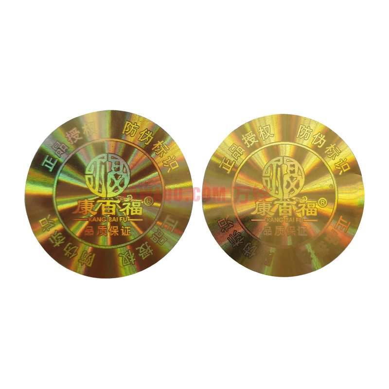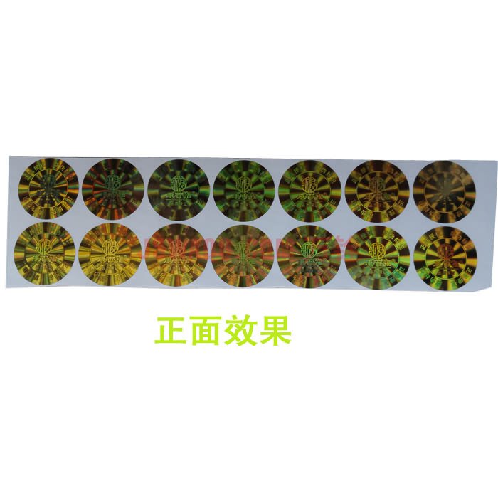 • 激光防伪标签又叫全息防伪标签,是利用激光彩色全息图制版技术和模压复制技术完成的防伪标签,可实现的制版技术有:点阵动态光芒、一次性专用激光膜、3D光学微缩背景、多彩光学随机干涉、中英文铀缩文字等。